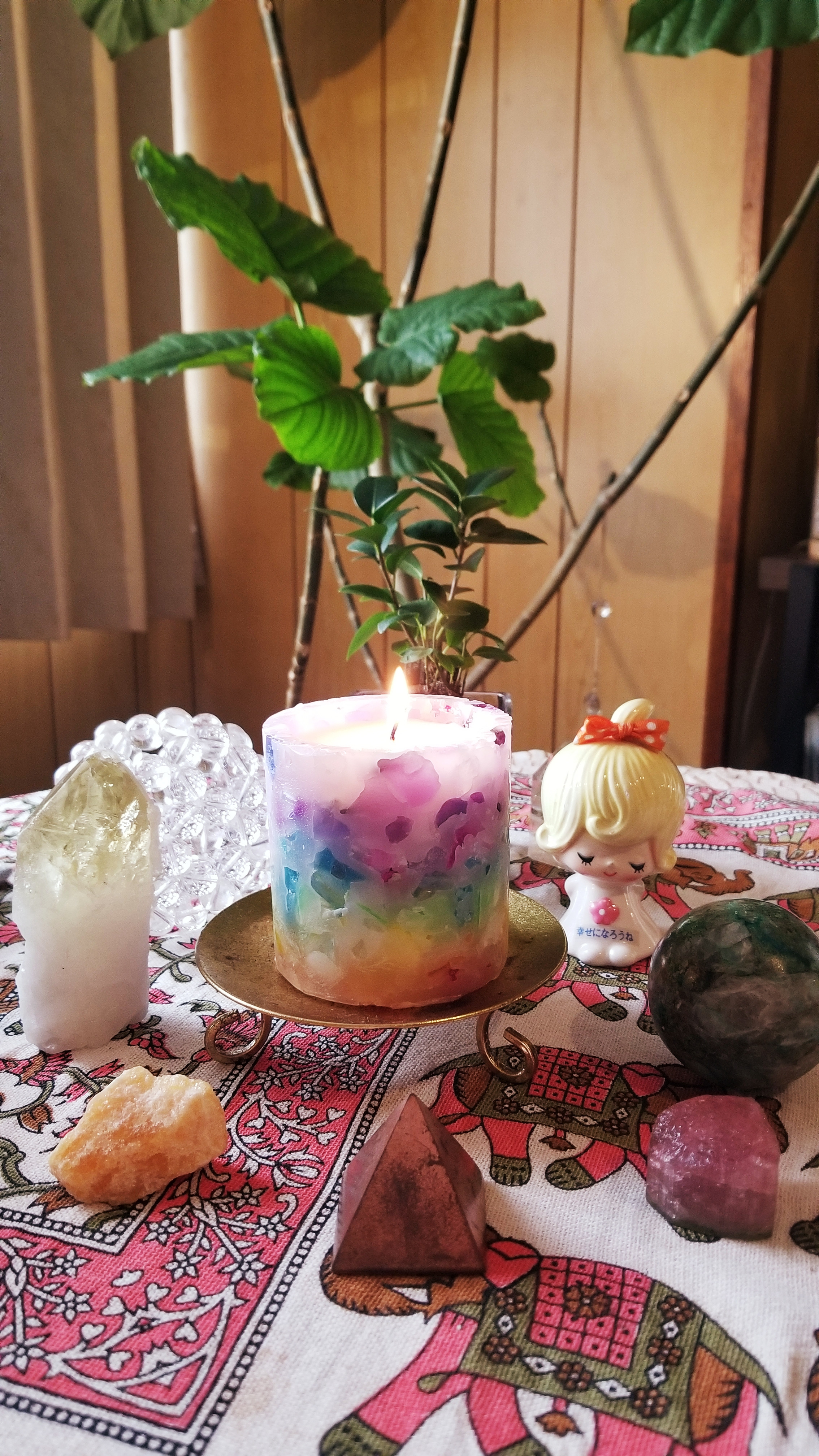 カードリーディングのメッセージから、アロマ、天然石、色を選んでソイアロマキャンドルを作りました♪